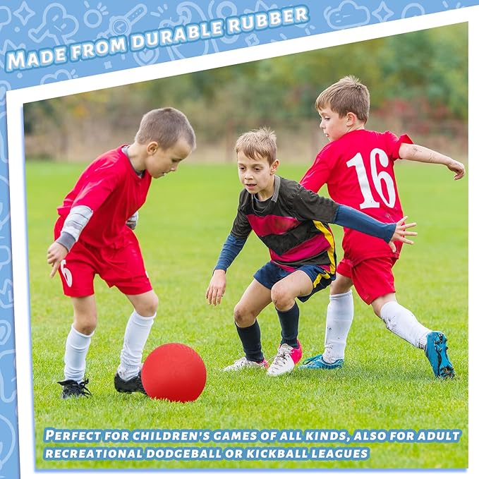 - Versatile Play: Perfect bouncing balls for children's games of all kinds, including dodgeball, kickball, handball, wall ball, and four square. These kickballs can also be used for adult recreational dodgeball or kickball leagues, or for fun at a BBQ, cookout and summer birthday party.