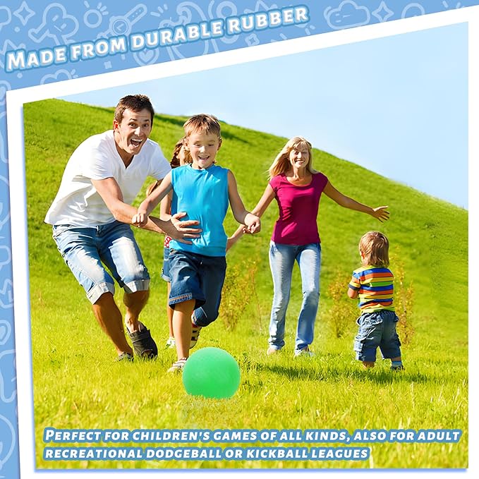 - Versatile Play: Perfect bouncing balls for children's games of all kinds, including dodgeball, kickball, handball, wall ball, and four square. These kickballs can also be used for adult recreational dodgeball or kickball leagues, or for fun at a BBQ, cookout and summer birthday party.