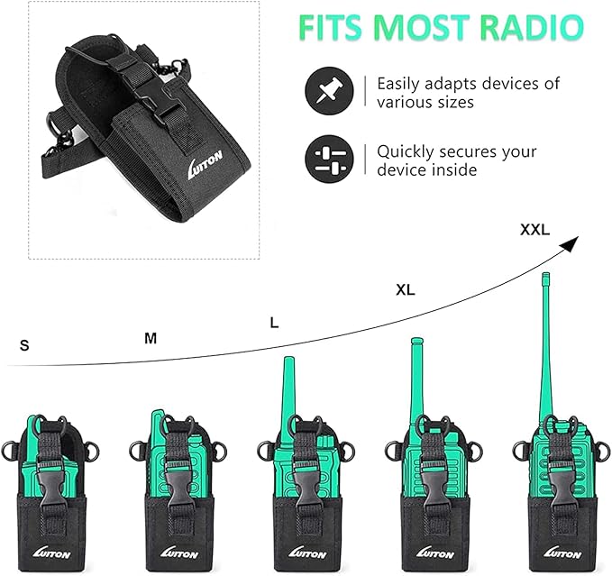 - 【4 in 1 Radio Strap Design】Waist hanging, chest hanging, shoulder hanging, belt hanging are available. Makes it suitable for all kinds of needs like firefighter, police, fireman, security guard, hiking, biking, camping, fishing, hunting, traveling and so on.