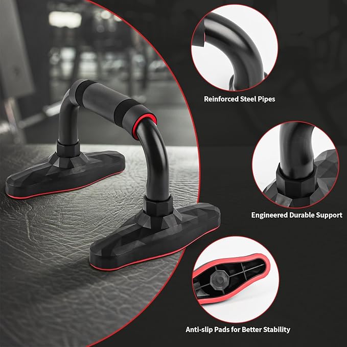 - ★Comfort First: Comfortable handles offer long-lasting support. Each push up bar has a cushioned foam grip, which helps to reduce strain on your wrists, helping you perform more effective pushups without wrist pain.
