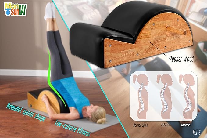 - 🖊️Pilates Spine Corrector,one of the most important pilates equipment, weight 26.5 lbs, 36"x17"x12.6", you can place it at home and enjoy home fitness even in bad weather, and it eliminates the need to go to the Gym. This is especially good for women working out at home.The product is available in Maple Wood and Rubber Wood, there is a difference in price, but both are great to use.