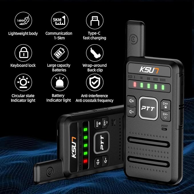 - [Convenient and Durable Design]: Our portable mini radios are built to withstand the rigors of daily use. Featuring a sturdy construction, easy operation, and a detachable belt clip, these walkie talkies are suitable for users of all ages. The included antenna ensures optimal signal reception, while the compact size and lightweight design make them perfect for on-the-go use.