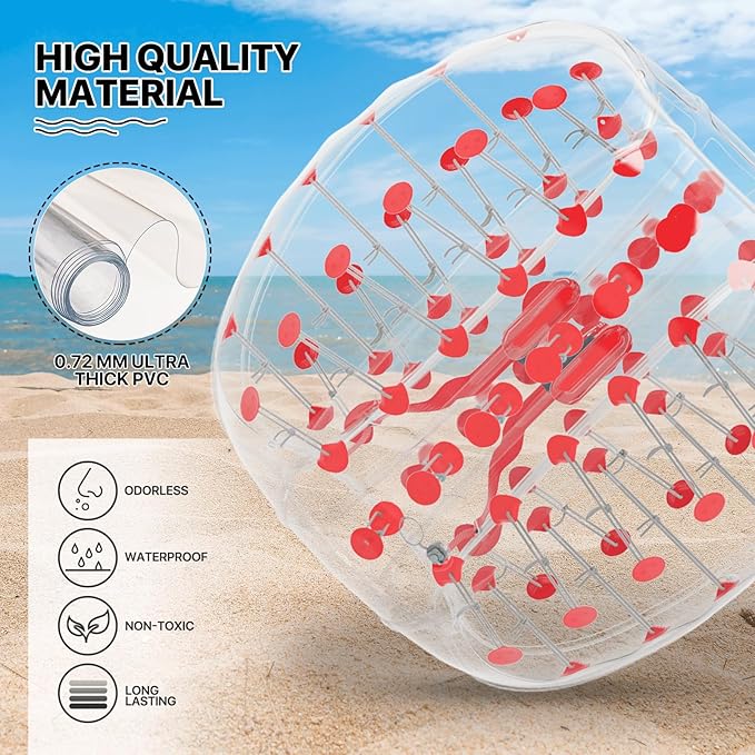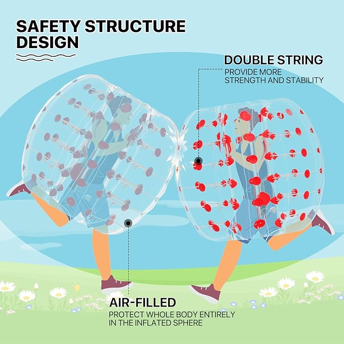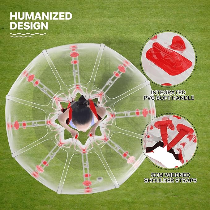 - Ergonomic Design - Bumper ball has 2 handles and 2 adjustable shoulder straps, tightly keep users inside. If you lose hold of the handles, the shoulder straps will guarantee your safety.