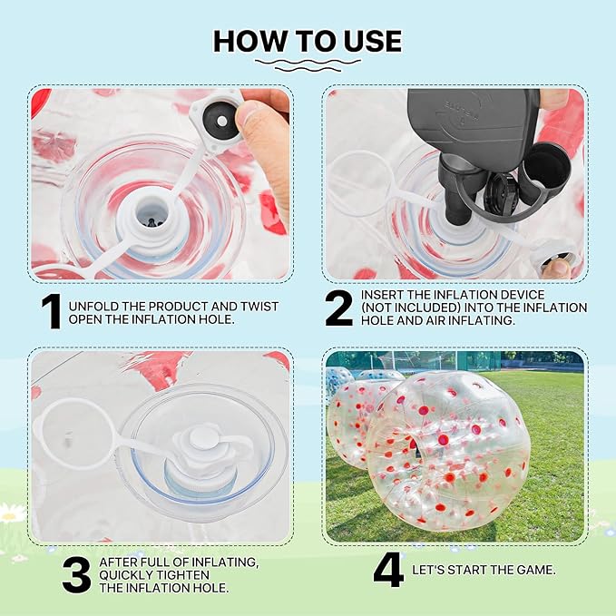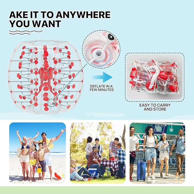- Easy to Inflate and Deflate - Our bubble bumper ball can be easily inflated by electric pump or air pump in minutes (Pump is not included). Ready to enjoy the fun the day you receive our ball.