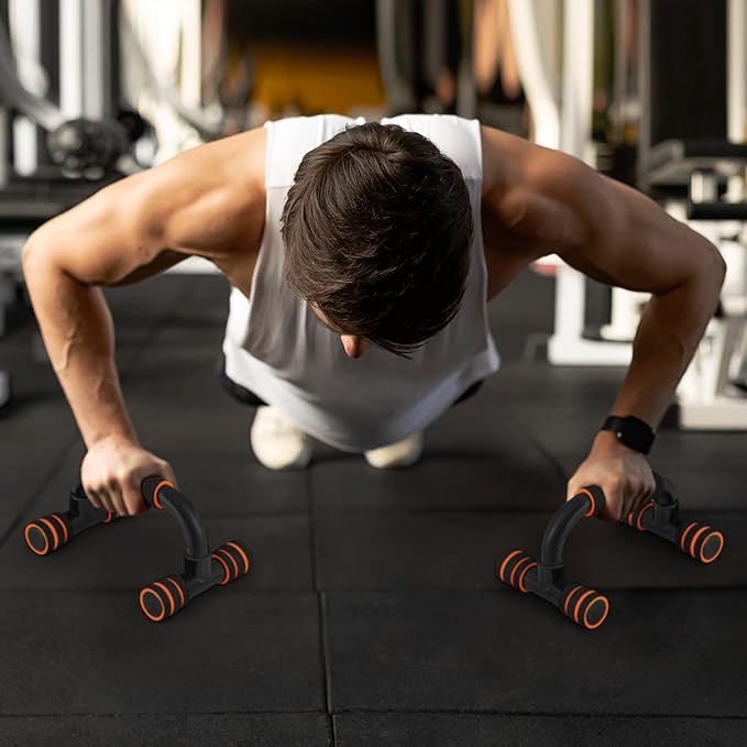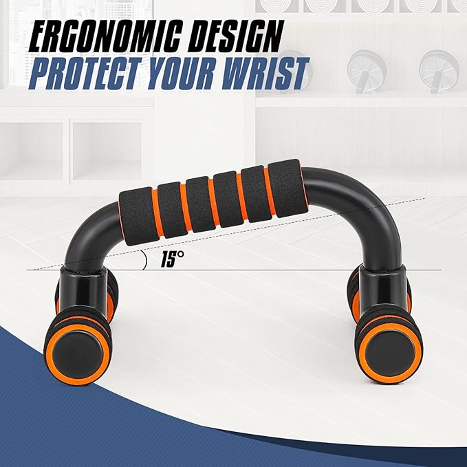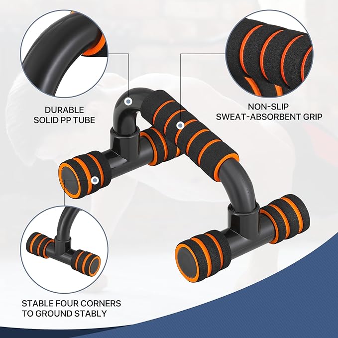 - Ergonomic Design - The I-shaped design of push-up bars can protect your wrist from hurt or injury during the workout. The push up bars increase the range of motion during push ups, make push ups easier and safe.