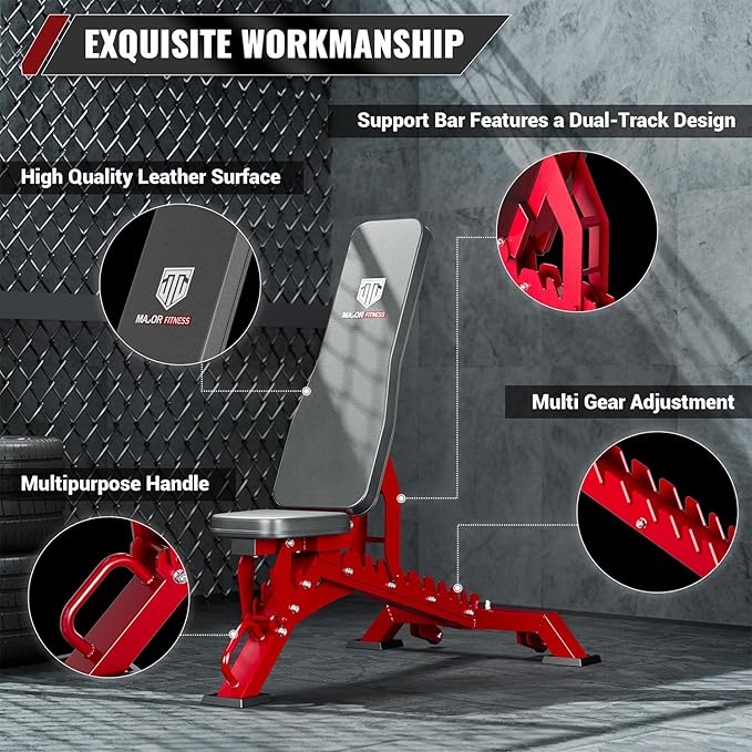 - 1300LBS Weight Capacity: Major Fitness weight bench adopts a unique triangular structure design and commercial-grade square steel. Rigorously tested through thousands of trials, it ensures a maximum load-bearing capacity of 1300 lbs. The dual-track design of the backrest support bar adds extra stability and safety, making it perfect for your most intense training sessions