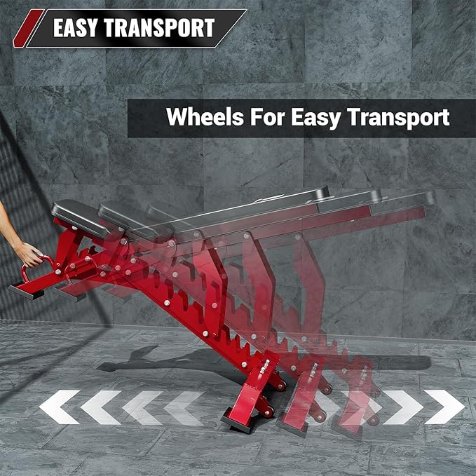 - Easy Assemble and Move: Assembling this strength training bench is a breeze, with all parts and tools neatly organized for quick setup. Just spend a few minutes tightening the components, and you can enjoy a commercial-grade workout. Perfectly sized and not taking up space, our adjustable weight bench has an extra handle and two wheels, making it easy to move the gym bench and exercise anywhere, anytime