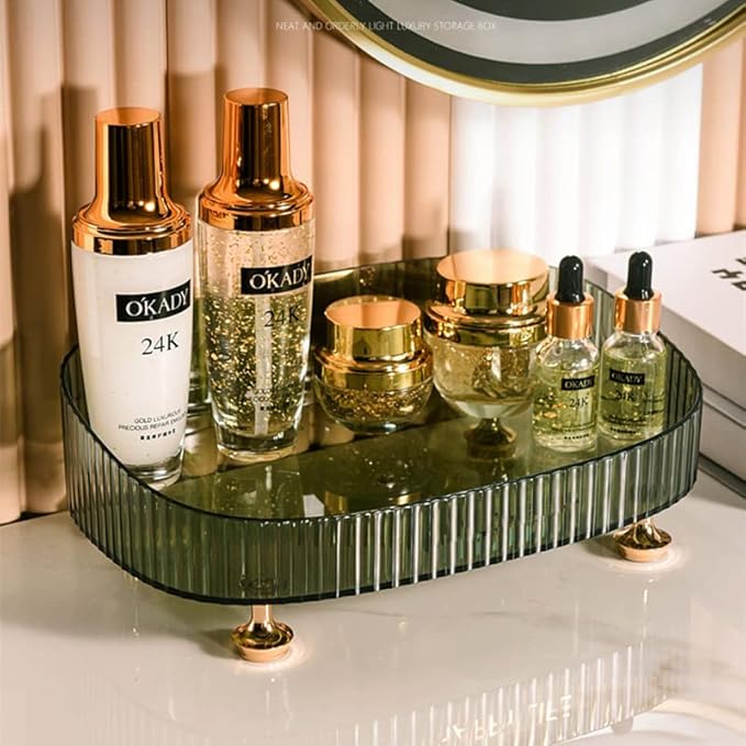 - 【Durable Material】: The makeup organizer is made of high-grade PET material, smooth surface, thickened material, non-slip mats, 4 gold stands make the makeup tray more durable and easy to clean.