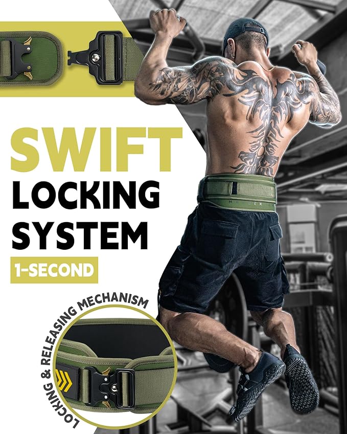 - 🔒 𝐒𝐰𝐢𝐟𝐭 𝐋𝐨𝐜𝐤𝐢𝐧𝐠 𝐒𝐲𝐬𝐭𝐞𝐦: Say goodbye to cumbersome adjustments with the MANUEKLEAR Quick Locking Weighted Belt. Featuring a lightning-fast 1-second locking and releasing mechanism, this belt ensures seamless transitions between exercises. Plus, our secure locking system is engineered for durability, capable of supporting heavier weights with ease.