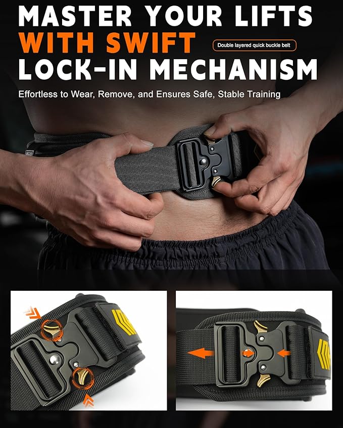 - 🏋️♂️ Master Your Lifts with Swift Lock-In Mechanism - With the MANUEKLEAR Weightlifting Belt, your workout efficiency hits new peaks. Engineered for the dedicated, our belt's innovative quick-lock carabiner mechanism allows for instant wearing and removal – because every second counts. The safety of your sessions is never compromised, ensuring you're secured in a snap for that next heavy lift.