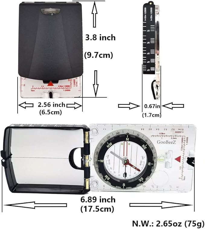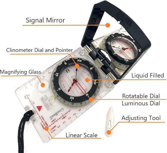Map Baseplate Compass with Adjustable Declination Clinometer Magnifying