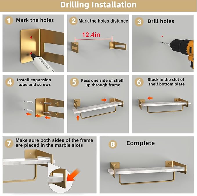 - Simple Installation:The marble bathroom shelf bottom has a card slot non-slip snap design,which is free removal, Convenient for cleaning and changing positions,Installation package including screws and anchors for easy setup