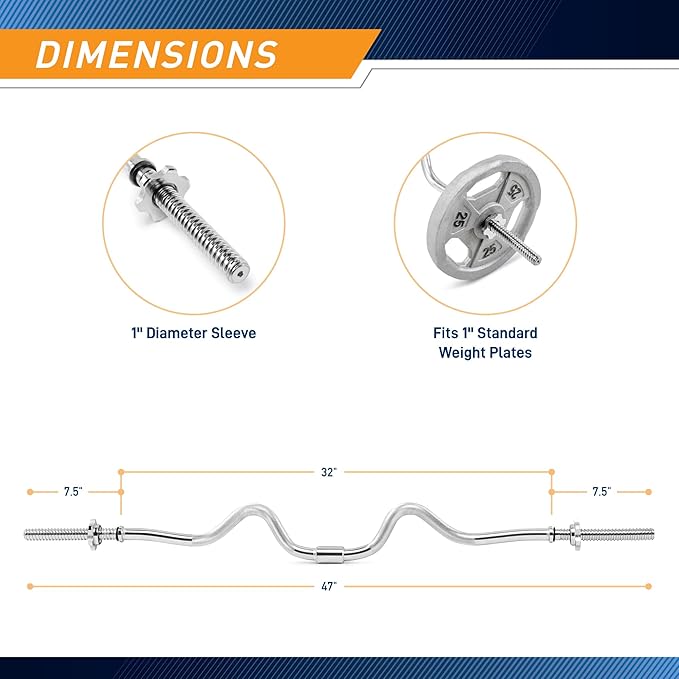 - COMPATIBLE WITH STANDARD PLATES – Built to be compatible with standard 1-inch weight plates without collapsing, this curl bar set secures workout weight plates effectively with its threaded posts and spinlock collars for a hassle-free workout experience.