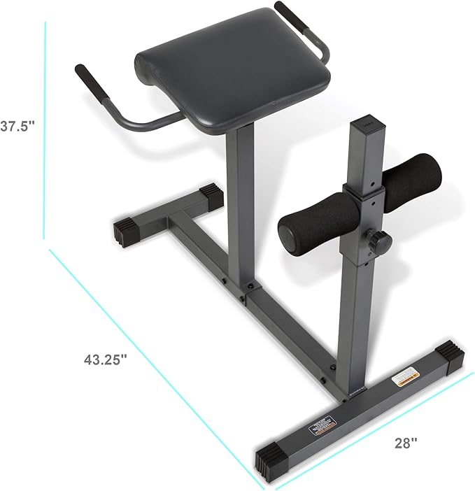 • HYPEREXTENSION BENCH – The Marcy Roman Chair features a back hyperextension station that lets you position yourself correctly while performing a variety of movements. Sit and lean backward to develop your core or flip over to perform back workouts with targeted motions.