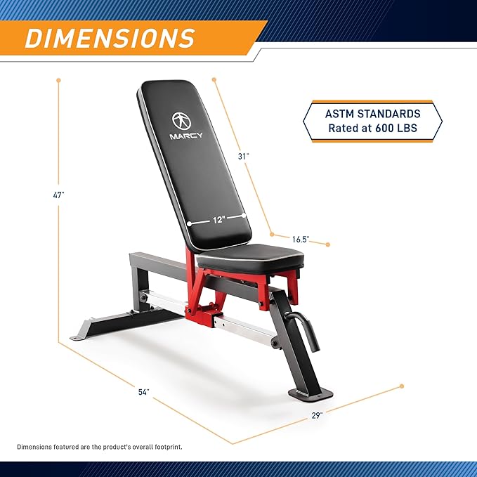 Marcy Adjustable Strength Training Utility Bench with Chrome SB-5429