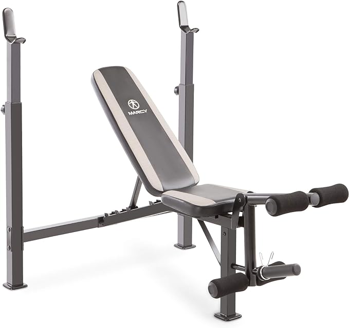• Gym Bench: Marcy's bench press set has ergonomically designed seating made from the best and high-density foam for back comfort and durability.