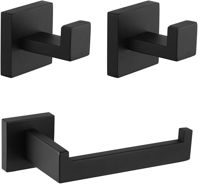Matte Black Bathroom Accessories Kit 3-Pieces Bathroom Hardware 304 Stainless 2X Robe