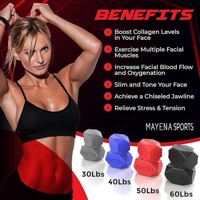 - Slim and Tone Your Face – Activate facial muscles while working out and increase facial blood flow and oxygenation. The exercises will tone your face & define your jawline. Mayena's jawline sculptor can be used by men or women