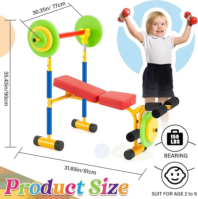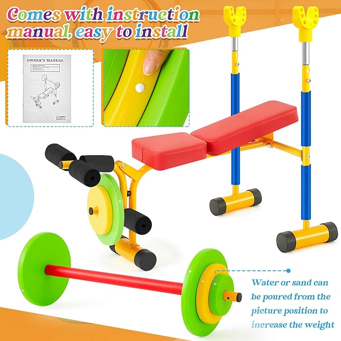 - What You Will Receive: you will receive 1 piece of kids weight bench in the package, including bench, barbell and foam tray; Come with instructions, easy for you to install, which are sufficient for your kids to use