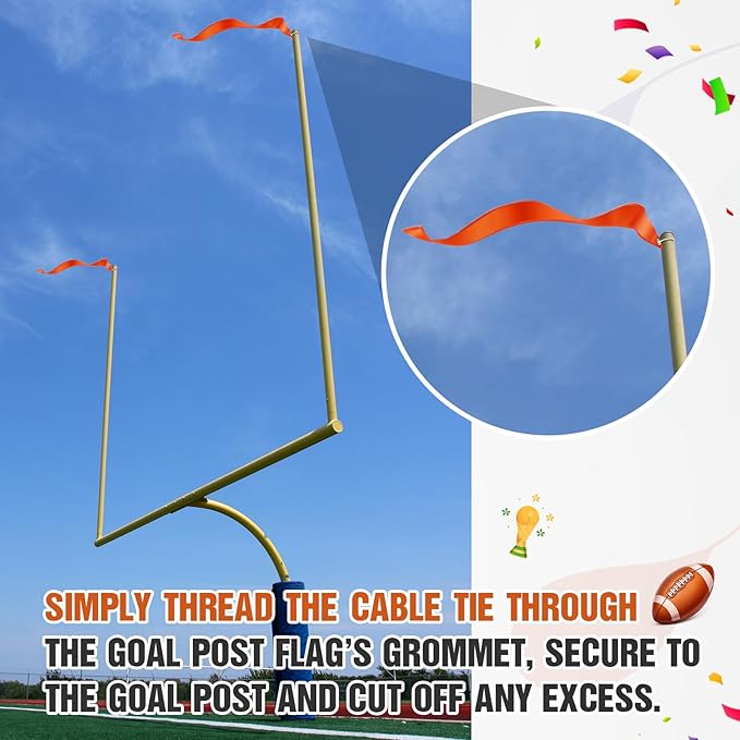 - Easy to Operate: you just need to thread the fixed cable tie through the grommet of the goal post directional flag, then fix on the goalpost and cut extra part, without spending too much effort and time