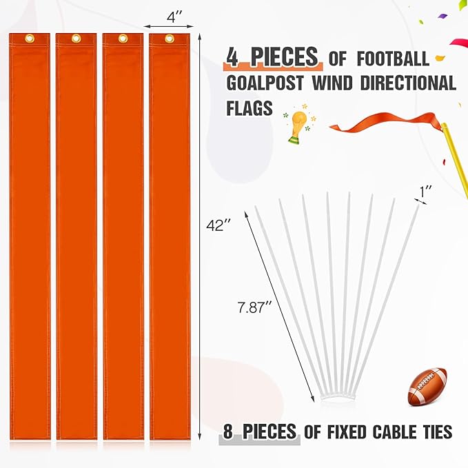 - Ideal Combination to Meet Your Needs: you will receive 4 pieces of football goalpost wind directional flags and 8 pieces of fixed cable ties; The combination is sufficient for you to apply, and can easily meet your daily use and other requirements