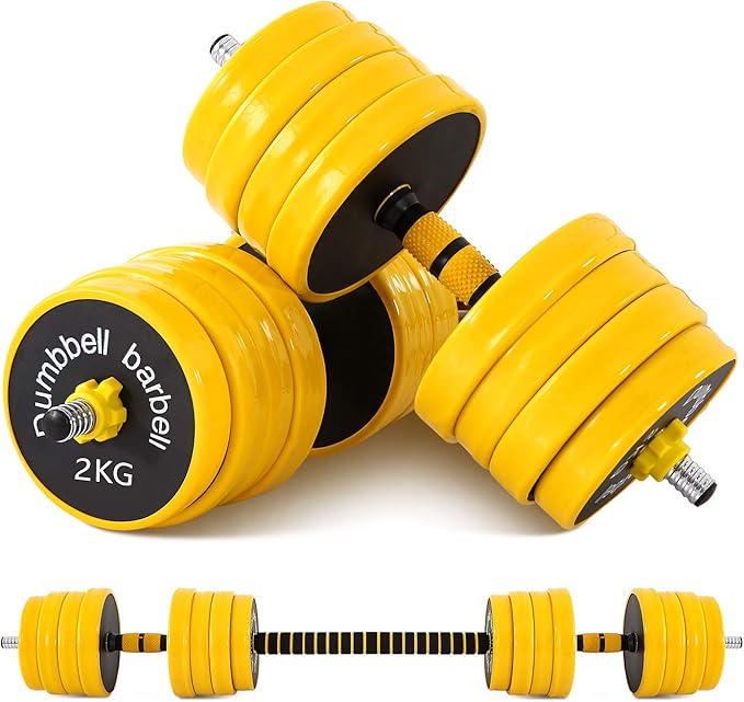 - COMPREHENSIVE EXERCISE SET- Our all-in-one dumbbell-barbell set allows you to have a versatile workout. The dumbbells can be used to sculpt your arms, while the barbell setup allows you to practice dead-lifts or squats. This product is perfect for improving overall health or encouraging weight loss. It also helps strengthen the upper body, core muscles, and lower body. The adjustable design makes it easy to stay fit at home.