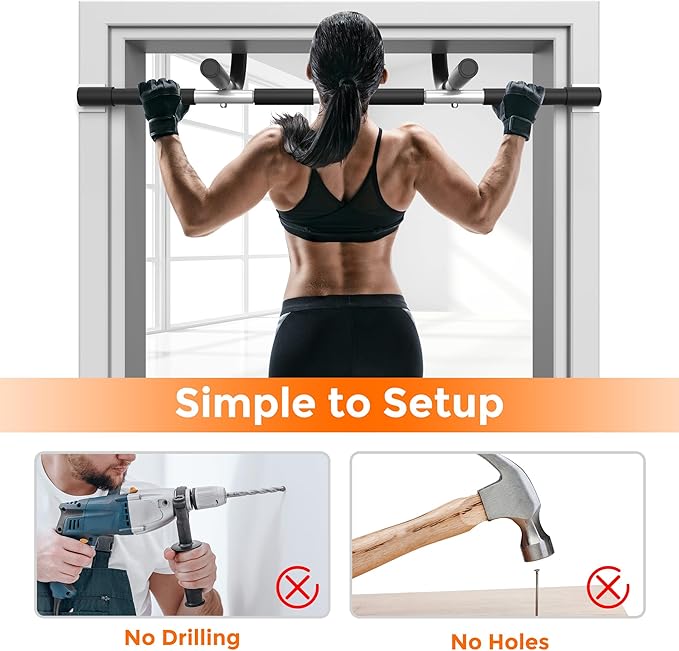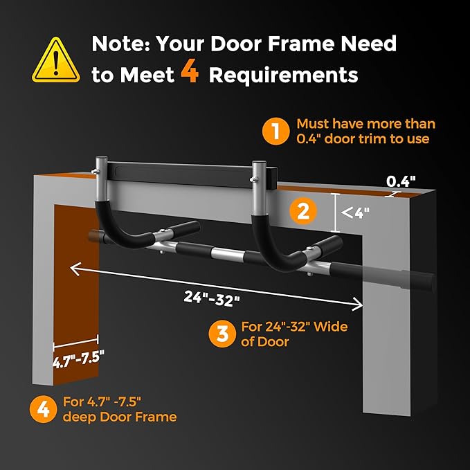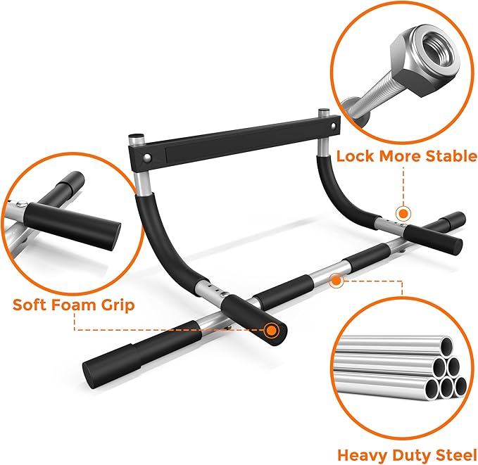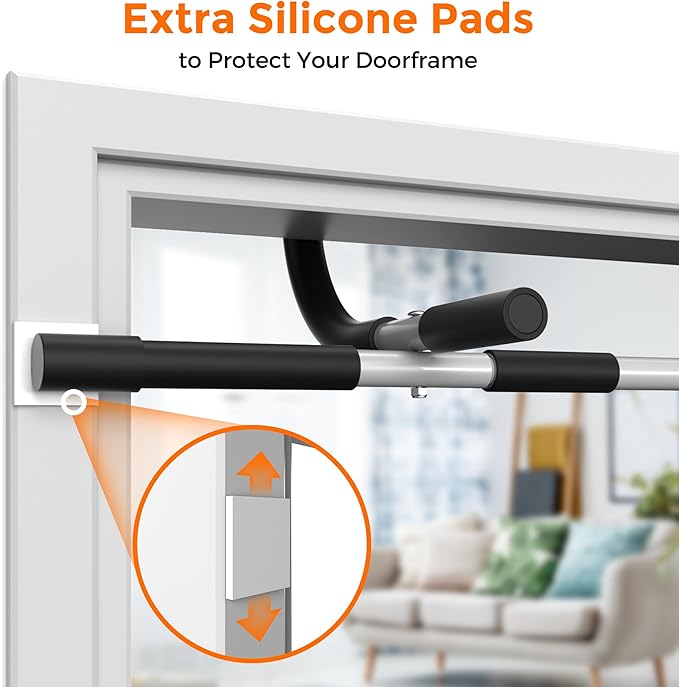 - PROTECTIVE DESIGN - Safeguard your doorframe with the pull-up bar's foam padding and two silicone pads. These features not only withstand daily use but also provide an extra layer of defense for your door frame.