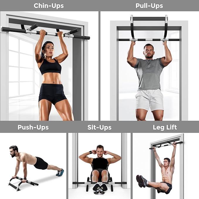 - UPPER BODY WORKOUT - With the ONETWOFIT doorway pull up bar, you can perform a wide array of upper body exercises, from pull-ups and chin-ups to push-ups and dips. Strengthen muscles, burn calories, and improve posture and balance—all with one simple setup.