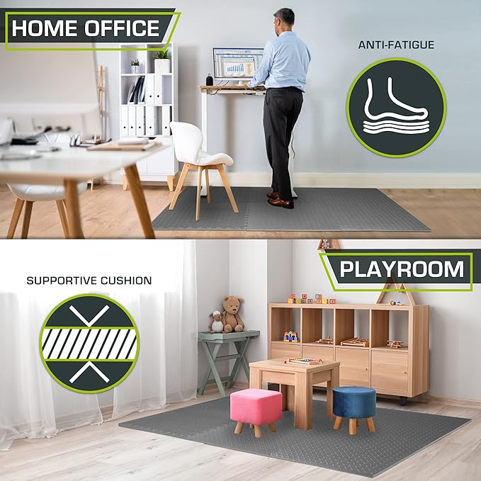 - Versatile – The water-resistant, noise-reducing design is easy-to-clean, great for indoor purposes like in garages as a protector, gyms, a home fitness room, or even children’s play areas as a playmat.