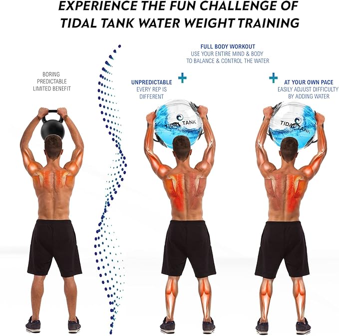 - GET THE ULTIMATE FULL BODY WORKOUT THROUGH INSTABILITY 🌊 Pick up the Tidal Tank Sphere and you immediately feel its unforgiving properties. The entire weight of the water sloshing from one side to the other in response to the smallest tilt. In order to raise it above your head, even the smallest muscles are activated, working together with the bigger muscles to maintain balance and power. Because of this, even 20 pounds of water can humble trained athletes.