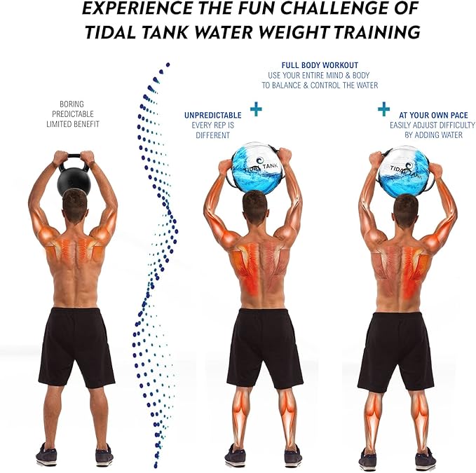 - GET THE ULTIMATE FULL BODY WORKOUT THROUGH INSTABILITY 🌊 Pick up the Tidal Tank Sphere and you immediately feel its unforgiving properties. The entire weight of the water sloshing from one side to the other in response to the smallest tilt. In order to raise it above your head, even the smallest muscles are activated, working together with the bigger muscles to maintain balance and power. Because of this, even 20 pounds of water can humble trained athletes.