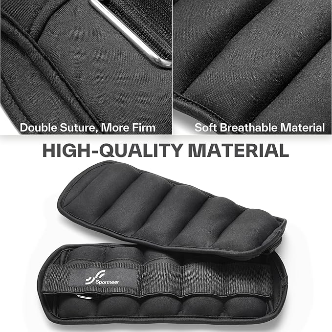 - QUALITY & COMFORT: The Sportneer leg weights are made of neoprene exterior, reinforced stitching, and sturdy outer trim. You could feel their softness when holding them in your hands.