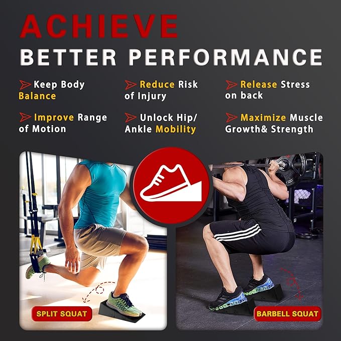 - Slant Board for Squats: Elevating The Heels with Squat Wedges Not Only Allows for Better Form by Altering The Angle of The Ankle Joint, Enhancing Range of Motion But Also Provides Assistance for Individuals with Mobility Restrictions Such As Tight Ankles or Calves, Helping Compensate for These Limitations And Achieve Better Performance