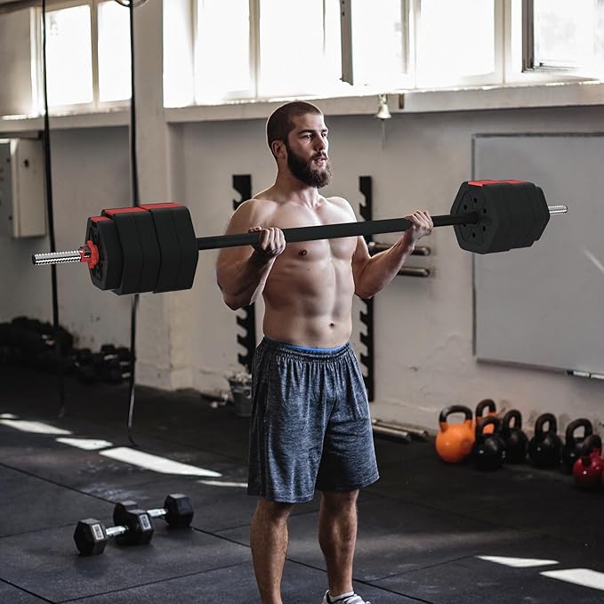 • Dumbbell & Barbell Set: Our all-in-one dumbbell-barbell set contains two dumbbell handle bars, you can switch the training modes you need randomly and perform multi-functional exercises. An all-in-one dumbbell-barbell set saves your space. No heap of different size dumbbells taking over your room
