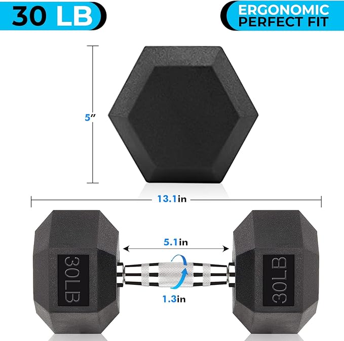 - Single 30 lbs high quality extreme durable rubber coated dumbbell, Premium grade cast iron heads, coated with heavy-duty rubber compound.