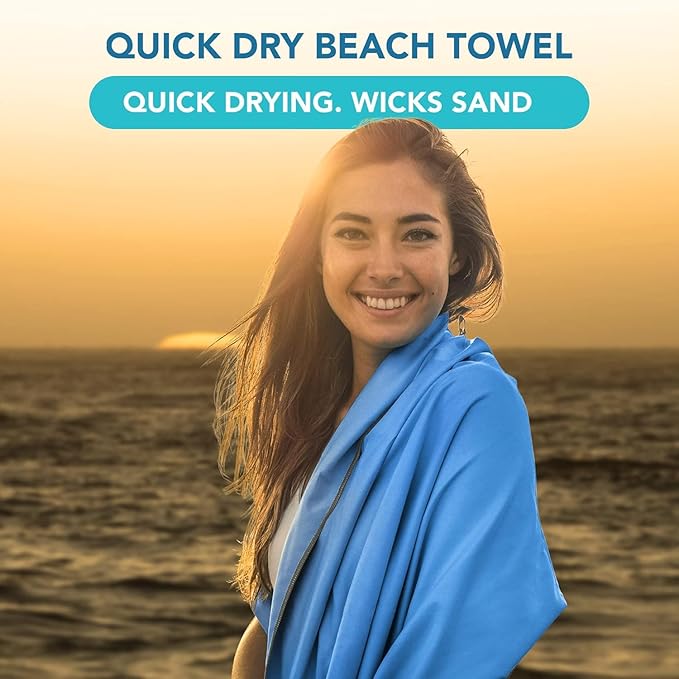 - SUPER ABSORBENT and FAST DRYING MICROFIBER: Our quick dry travel towel can hold up to five times its weight in water, making it the most functional microfiber towel for travel packing. Our microfiber towels also dry up to ten times faster than normal, terry cloth or cotton towels. They’re perfect for indoor or outdoor activities.